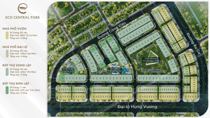 Phân khu The Garden là phân khu thấp tầng ra mắt đầu tiên của dự án Eco Central Park, được gọi là “trái tim phía Đông“ của dự án. Được phát triển theo mô hình khu đô thị sinh thái chuẩn quốc tế, thiết kế với concept mang vườn vào trong nhà – nhà trong công viên – công viên trong đại công viên. Tổng hợp có 263 sản phẩm hữu hạn, bao gồm: Biệt thự Đơn Lập, Biệt thự Song Lập, Nhà phố Vườn, Nhà phố Đại Lộ.